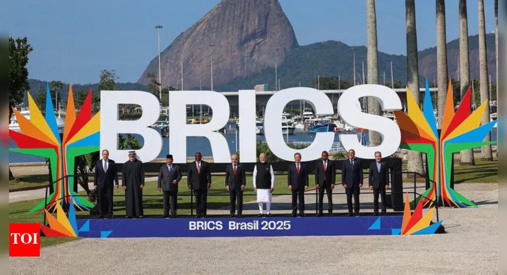 NEW DELHI: Prime Minister Narendra Modi joined fellow leaders at the 17th Brics Summit in Rio de Janeiro, Brazil, reaffirming India’s commitment to greater collaboration and equitable global development.Held at the Museum of Modern Art, the summit brought together representatives from the original five Brics nations—Brazil, Russia, India, China and South Africa—as well as new member countries including Egypt, Ethiopia, Iran, the UAE, Indonesia and Saudi Arabia.During the traditional photo session, PM Modi stood alongside Brazilian President Luiz Inácio Lula da Silva, South African President Cyril Ramaphosa, and other leaders.“With fellow Brics leaders at the Summit in Rio de Janeiro, Brazil, reaffirming our commitment to closer cooperation and shared growth. Brics holds immense potential to shape a more inclusive and equitable global future,” PM Modi said in a post on X.In his address at the first plenary session, PM Modi said the Global South has often been a victim of “double standards,” particularly when it comes to development, distribution of resources, and security. He argued that countries making major contributions to the global economy still lack representation in key decision-making bodies.“The Global South has often been a victim of double standards. Whether it is about development, distribution of resources, or security-related issues,” he said. PM Modi added that on issues like climate finance, sustainable development and access to technology, developing countries have received little more than token gestures.He criticised the outdated nature of global institutions, noting, “In the age of artificial intelligence, where technology is updated every week, it is not acceptable for a global institution to not be updated even once in 80 years.” He added that “21st century software cannot be run by 20th century type-writers.”Calling for comprehensive reforms of institutions such as the UN Security Council, WTO and multilateral development banks, he said reforms should not be symbolic but must include real changes to governance structures, voting rights and leadership positions.“The challenges of the countries of the Global South should be given priority in policy-making,” he stressed, while describing Brics expansion as proof of the bloc’s ability to evolve with time. He further said, “India has always considered it its duty to rise above its own interests and work in the interest of humanity.”The ministry of external affairs also highlighted the collective stance of the bloc. “A collective commitment to addressing global challenges & promoting common values. PM Narendra Modi joined the Leaders from the Brics countries for the family photo at the 17th Brics Summit in Rio de Janeiro, Brazil,” the MEA posted on X.The summit, hosted by Brazil from 6 to 7 July, focused on key global issues ranging from multilateralism and artificial intelligence to climate action, peace and security, and economic resilience. PM Modi exchanged views with other leaders on all these matters during the summit sessions.Earlier, PM Modi was seen sharing a hug with Brazilian President Lula on arrival and also catching up with President Cyril Ramaphosa of South Africa. “Grateful to President Lula for hosting this year’s Brics Summit in Rio de Janeiro. Brics remains a powerful force for economic cooperation and global good,” PM Modi wrote on X. In another post, he said, “Good catching up with my friend, President Ramaphosa of South Africa!”