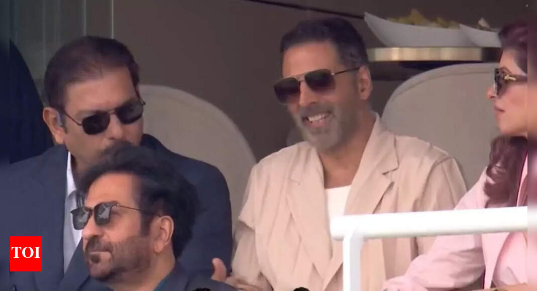 Bollywood superstar Akshay Kumar was spotted in the stands at Lord’s during the intense Day 5 action of the third Test between India and England, and his appearance quickly became a viral moment. The “Khiladi” actor was seen seated next to former India head coach and commentator Ravi Shastri, along with his wife Twinkle Khanna, as they closely followed the match. The candid photo of Akshay, Twinkle, and Shastri enjoying the game instantly did the rounds on social media, sparking excitement among fans.
