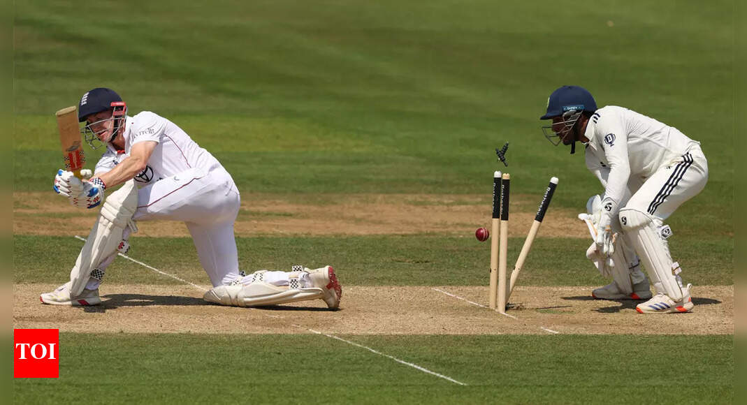 Harry Brook’s aggressive brand of cricket came crashing down at Lord’s on Day 4 of the third Test, as the England batter threw his wicket away while attempting a premeditated sweep against Akash Deep. Former Sri Lanka captain and Sky Sports pundit Kumar Sangakkara didn’t hold back in his assessment, labelling Brook’s approach as “arrogance” rather than Bazball.Live Score: India vs England 3rd Test“It is just arrogance. Not even Bazball,” Sangakkara said bluntly. “Harry scored 15 runs against Akash Deep and then played a silly shot — that’s arrogance.”Go Beyond The Boundary with our YouTube channel. SUBSCRIBE NOW!Brook, who had counter-attacked with flair by hitting Akash Deep for three consecutive boundaries — including a majestic straight six — was bowled for 23 off 19 balls. Attempting an audacious sweep to a full delivery angled in at middle stump, Brook missed completely as the ball crashed into the stumps behind his legs. His dismissal reduced England to 98/4 at lunch, with India surging back into the contest.With both teams scoring 387 in the first innings, England’s slender lead of 98 runs at lunch looked increasingly fragile as India pushed for a 2-1 lead in the five-Test series.