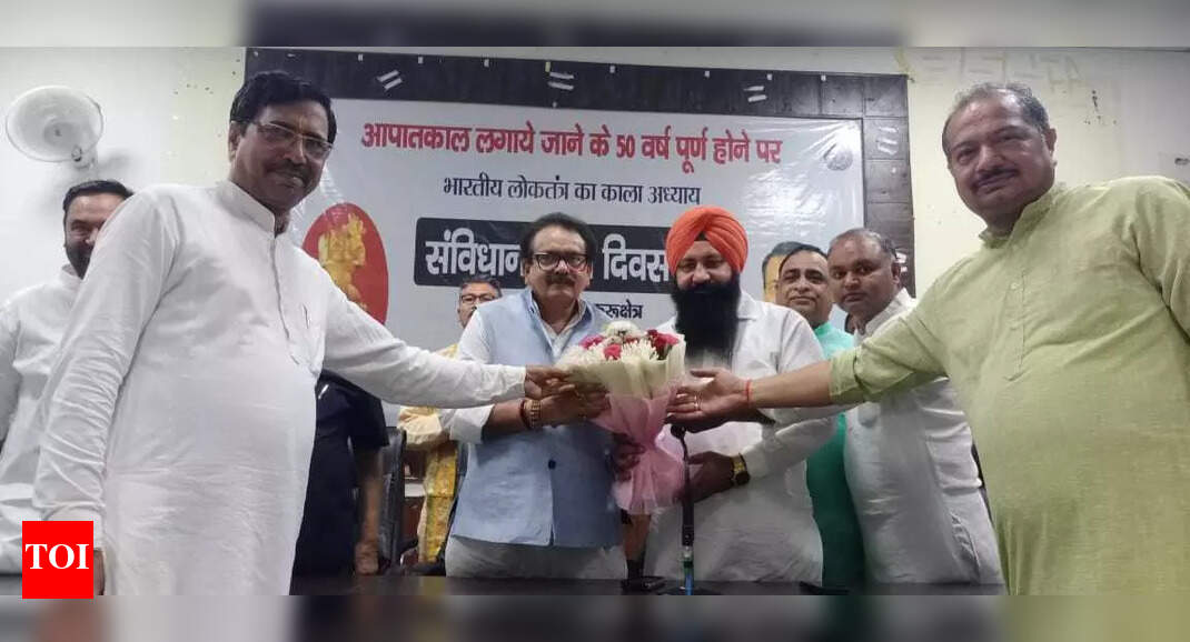 KURUKSHETRA: Union minister of state (MoS) for Fisheries, Animal Husbandry and Dairying and Panchayati Raj, SP Singh Baghel on Wednesday described the Indian Constitution as a sacred text on par with the sacred Bhagavad Gita, Guru Granth Sahib, and theBible, emphasising that it must be respected and honoured as the foundation of India’s democracy. Notably, the minister did not make any mention of the sacred Quran in his address. He was speaking at a program organised on the occasion of “Samvidhan Hatya Diwas 2025” (Constitution Murder Day 2025) at the Panchayat Bhawan auditorium in Kurukshetra.Addressing the gathering as the chief guest, minister Baghel said that amendments in the Constitution are acceptable if made in the national interest, but any changes made for personal or political gain amount to the murder of the Constitution. He asserted that the Bharatiya Janata Party (BJP) is committed to protecting the Constitution and upholding democratic values.Prior to his address, the minister visited a special exhibition organised to depict the events surrounding the Emergency imposed in 1975, a period he said widely viewed as a dark chapter in Indian democracy. During the event, individuals who were jailed during the Emergency and their families were honoured with shawls in recognition of their sacrifices.Baghel highlighted the symbolic importance of Kurukshetra, calling it the land where the eternal struggle between dharmaandadharma, and justice and injustice, was first understood. He said this message, rooted in Indian civilisation, has resonated globally. “In every age, injustice has ultimately failed. This lesson must not be forgotten, especially by those who attempt to undermine the Constitution,” he remarked.He also underscored India’s democratic heritage, stating, “Our democracy dates back to the Dwapar and Treta Yugas. In contrast, the United States only has the Statue of Liberty to symbolise its democratic ideals, yet it claims the oldest democracy. Today, India’s citizens challenge that claim with pride, as India remains the world’s oldest and largest democracy.”The Minister took the opportunity to highlight India’s progress on gender inclusion in leadership, stating, “India has had two women Presidents, while the US is yet to elect a woman President.”Criticising the 1975 Emergency, Baghel called it the only dark blot on Indian democracy. “It was a time when civil liberties were crushed. Citizens had to go into hiding, businesses were shuttered, farmers could not tend to their fields, and anyone seen outside risked being jailed. Around 1.1 lakh people, including journalists, were imprisoned. Electricity supply was cut off, and mass sterilisations were conducted. None of the conditions required to declare an emergency—external threat, internal disturbance, or financial crisis—existed at the time,” he said.He noted that after the BJP came to power, efforts were made to honour and recognise those who had endured suffering during the Emergency, restoring their dignity in the nation’s democratic narrative. The event was attended by several BJP leaders from Kurukshetra.