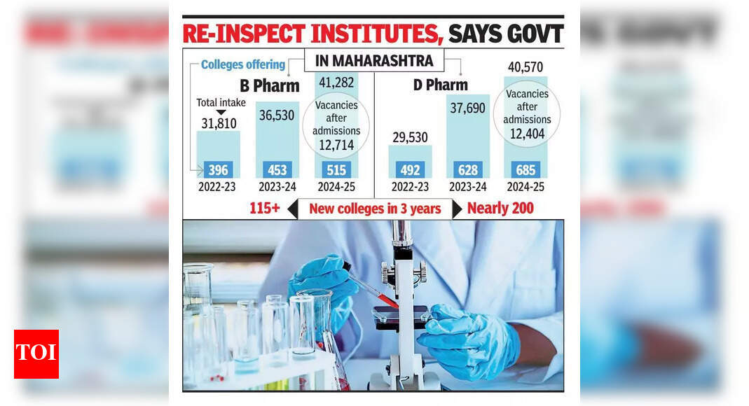 Mumbai: Pharmacy colleges established in the state over the last three years have come under scrutiny following complaints about forged documents, including certified maps and occupation certificates for buildings, being submitted for approvals. More than 115 colleges offering B Pharm and nearly 200 offering D Pharm have emerged during this period. Acting on these complaints, state govt has ordered a re-inspection of all such institutions to verify the authenticity of their documents and whether they meet all the requirements. The aim is to contain the mushrooming of colleges in the state and prevent vacancies of seats during admissions. Data from the Directorate of Technical Education (DTE) shows that over 30% of seats remained vacant last year in both B Pharm and D Pharm courses in the state.In a recent order, govt stated that several complaints were received by the higher and technical education minister regarding pharmacy, diploma, degree, and postgraduate institutions that were granted approval by submitting bogus documents such as certified maps, no-objection certificates (NOCs), occupancy certificates, and utility certificates to state and central govts. The order directed: “The validity of these documents should be verified with the relevant authorities, and an institution-wise inspection report should be submitted to confirm whether adequate educational facilities are available.” The Pharmacy Council of India (PCI) gives approval to new institutions once affiliating universities and respective state govts provide them with NOCs.Milind Umekar, president of the Indian Pharmaceutical Congress Association, a federation of five pharmaceutical associations, highlighted two key reasons behind the rapid increase in pharmacy institutions in Maharashtra. “The demand for pharmacy courses surged after the Covid-19 pandemic, as people began recognising growing opportunities in the pharmaceutical industry, including research, clinical studies, pharmacovigilance, formulation and development, and drug or vaccine manufacturing. India ranks third globally in drug production by volume and is among the top exporters. Secondly, before 2022, the PCI imposed a moratorium on setting up new institutes. Once this was lifted following a court order, several colleges rushed to introduce pharmacy programmes,” he said, adding that a comprehensive re-inspection exercise is crucial to ensure all institutions meet PCI norms, including the required number of qualified faculty, infrastructure, and laboratories.A representative from a college management said that in the last three years, many colleges were given NOCs by the respective universities, mainly Dr Babasaheb Ambedkar Technological University (BATU) Lonere, without any physical inspection and based on documents submitted by the institutions. “BATU has the highest number of affiliated pharmacy colleges in the state, and most may have come up in the last three years. The university, set up exclusively for technical colleges in the state, faces a severe shortage of manpower, impacting the quality of education in the affiliated institutions,” he alleged.A govt official said that officials from the Maharashtra State Board of Technical Education and DTE have started carrying out the inspection exercise, adding that no timeline has been provided.