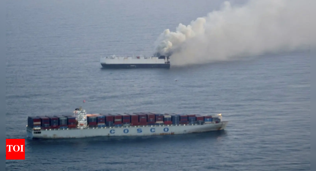 A cargo ship transporting nearly 3,000 vehicles to Mexico sank in the North Pacific Ocean on Monday, weeks after a fire forced its crew to abandon the vessel. The ship, named Morning Midas, went down in international waters off Alaska’s Aleutian Islands, according to a statement from the vessel’s management company, London-based Zodiac Maritime.The fire broke out on June 3, when the Morning Midas was about 300 miles southwest of Adak Island. The blaze burned out of control for days, ultimately disabling the 600-foot ship, which was built in 2006 and sailed under a Liberian flag, reported the Seattle Times.All 22 crew members evacuated safely to a lifeboat and were rescued by a nearby merchant marine ship. No injuries were reported during the evacuation.Despite efforts to contain the damage, worsening weather and water seepage contributed to the ship’s sinking in waters approximately 16,400 feet deep and about 415 miles from land.The ship had departed from Yantai, China, on May 26 and was headed to a major Pacific port in Mexico. It was carrying around 3,000 new vehicles, including about 70 electric and 680 hybrid models. A plume of smoke had been observed coming from the ship’s stern, reportedly from the area where electric vehicles were stored.While it remains unclear whether any of the vehicles were salvaged before the sinking, Zodiac Maritime confirmed that two salvage tugs equipped with pollution control gear remain on-site to monitor for environmental risks. The company is also dispatching a specialized pollution response vessel as a precaution.According to the US Coast Guard, no visible pollution has been detected so far. Right now we also have vessels on scene to respond to any pollution,” said Petty Officer Cameron Snell, based in Alaska.The incident follows growing global concerns about fire safety on ships carrying electric vehicles. A recent Dutch safety board report called for improved emergency response on North Sea routes after a similar fire in 2023 on a freighter transporting cars from Germany to Singapore.