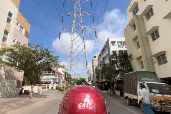 The two-wheeler rider can be seen cautiously manoeuvring around the towering structure(X/@punitpalial) NEW DELHI: A video shared by a Bengaluru resident has gone viral for capturing a high-tension (HT) electric transmission tower standing directly in the middle of a road near Hebbal, prompting a wave of amused and bewildered reactions online. The clip, captioned “Allow…