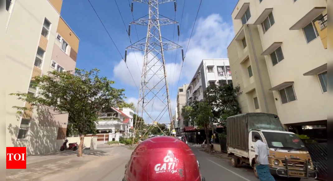 NEW DELHI: A video shared by a Bengaluru resident has gone viral for capturing a high-tension (HT) electric transmission tower standing directly in the middle of a road near Hebbal, prompting a wave of amused and bewildered reactions online. The clip, captioned “Allow me to introduce you to this masterpiece in Bangalore,” quickly spread across social media, giving rise to a flurry of memes, jokes, and critical commentary.The video shows a two-wheeler rider cautiously manoeuvring around the towering structure, which has since become a talking point for the city’s urban planning woes. The footage sparked widespread discussion on X, where users questioned the logic behind such planning decisions.Online reactions ranged from humorous to sharply critical. “What came first? The road or the tower? Gotta know who’s responsible,” one user commented. Another referred to it as the “Eiffel Tower of Bangalore,” while a third joked, “Blore people are going to line up to see this place.” Some responses were more pointed, with a user writing, “Many times the answer is corruption, but quite often, it’s just plain stupidity.”Some users noted that this phenomenon isn’t exclusive to Bengaluru. “There’s one in Karur as well, if that makes you feel any better,” one wrote.Offering some local context, a resident familiar with the area identified the location as Hebbal Kempapura. They explained that the HT line, which stretches from the Sahakarnagar sub-station to Yelahanka, predates much of the nearby construction. “This line goes to Sahakarnagar sub-station and all the way to Yelahanka. 30 years ago, the houses around this line didn’t exist,” the user stated. They also mentioned that underground cabling is underway, and it may only be a matter of time before the overhead line and possibly the tower is removed.